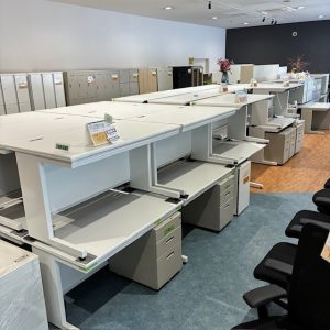 今回、展示商品をオフィス需要としてお声が多い、デスク・インワゴン・チェアー・キャビネット・ロッカーと幅広く取り揃えております。